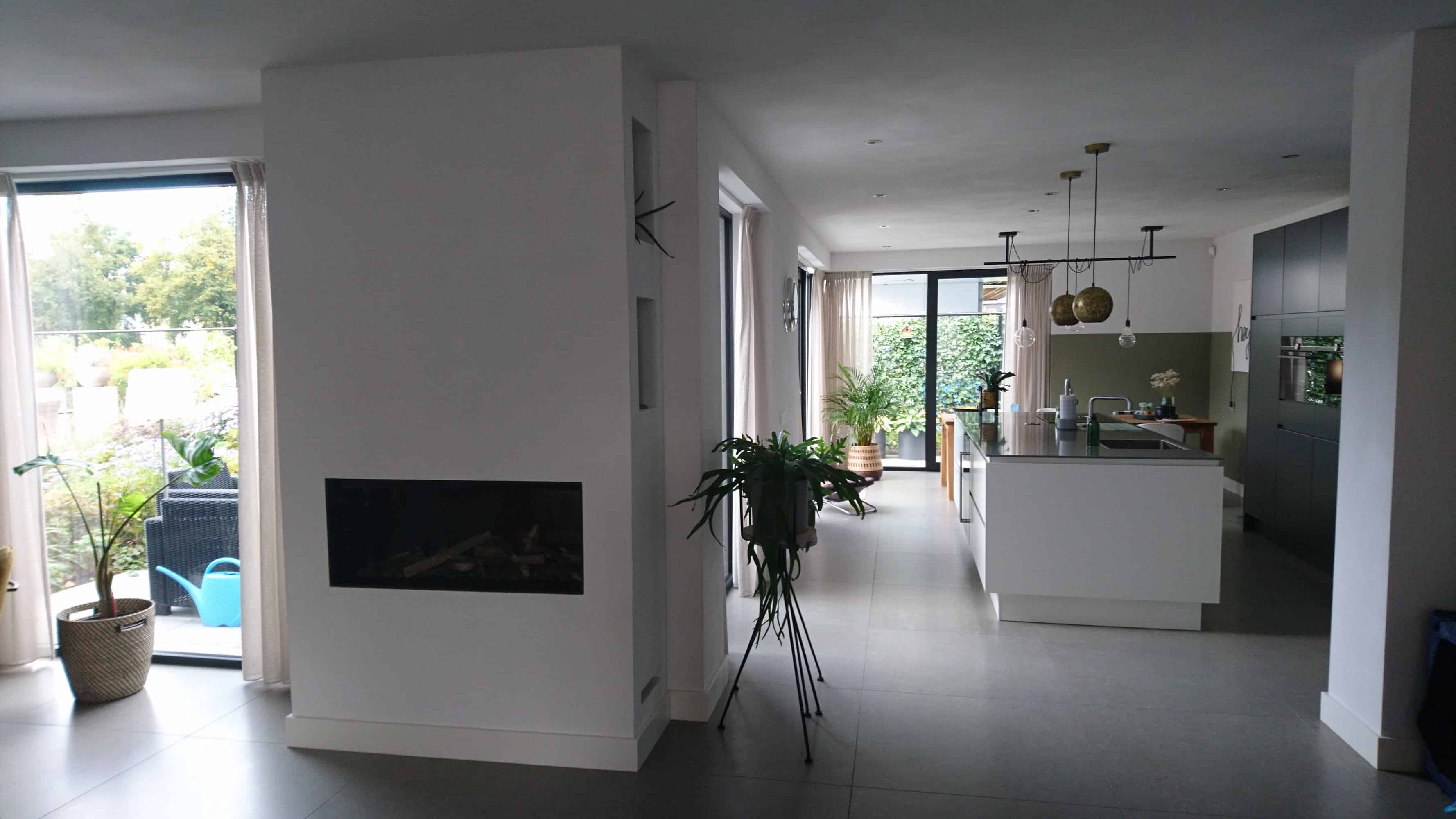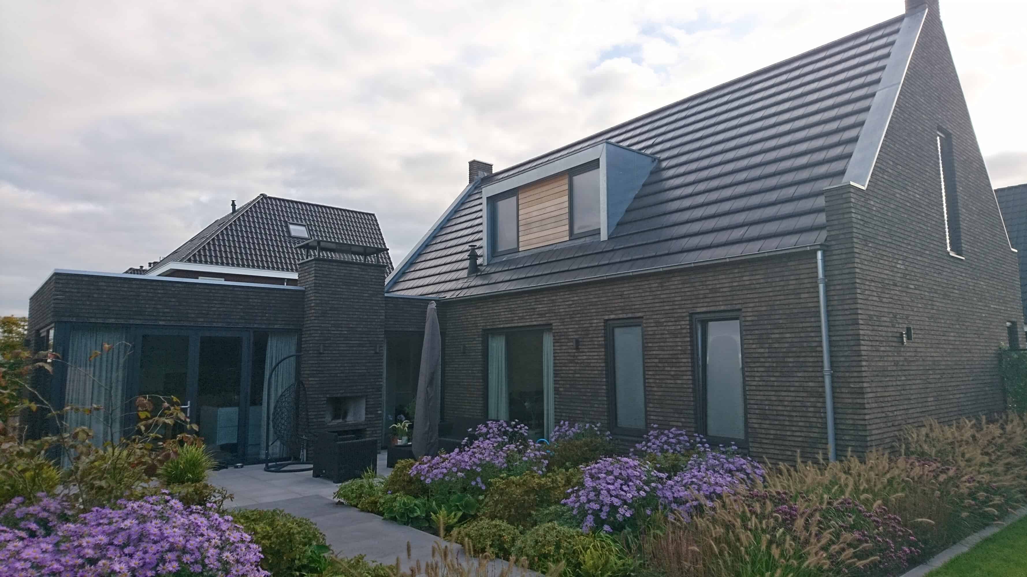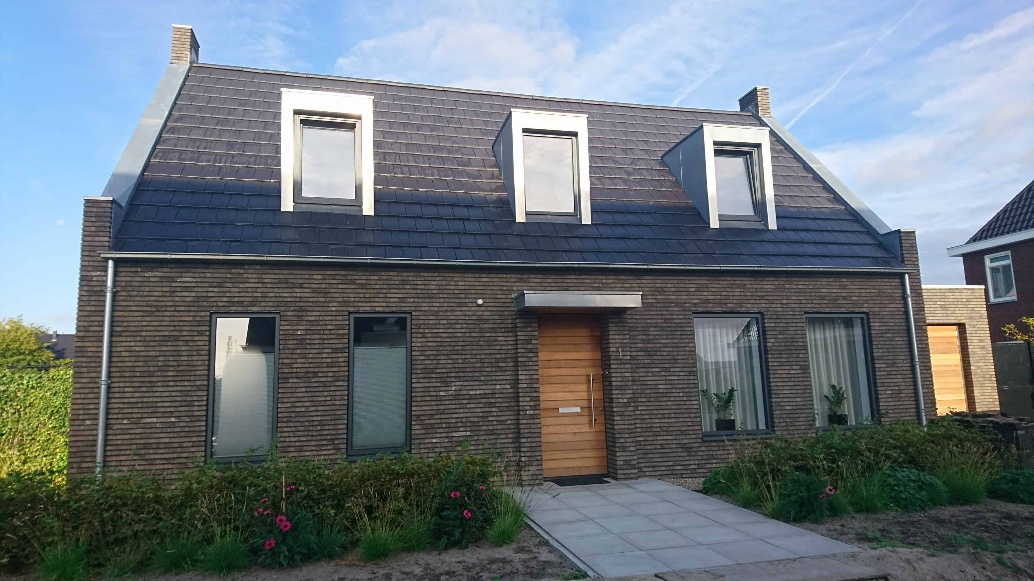 Nieuwbouw woonhuis met diverse Red Cedar afwerkingen en zinkafwerking rondom de dakkapellen, luifel voordeur en dakrand. De woning is voorzien van aluminium kozijnen. Binnen is gekozen voor een stalen trap met houten treden en een stalen binnendeurkozijn.