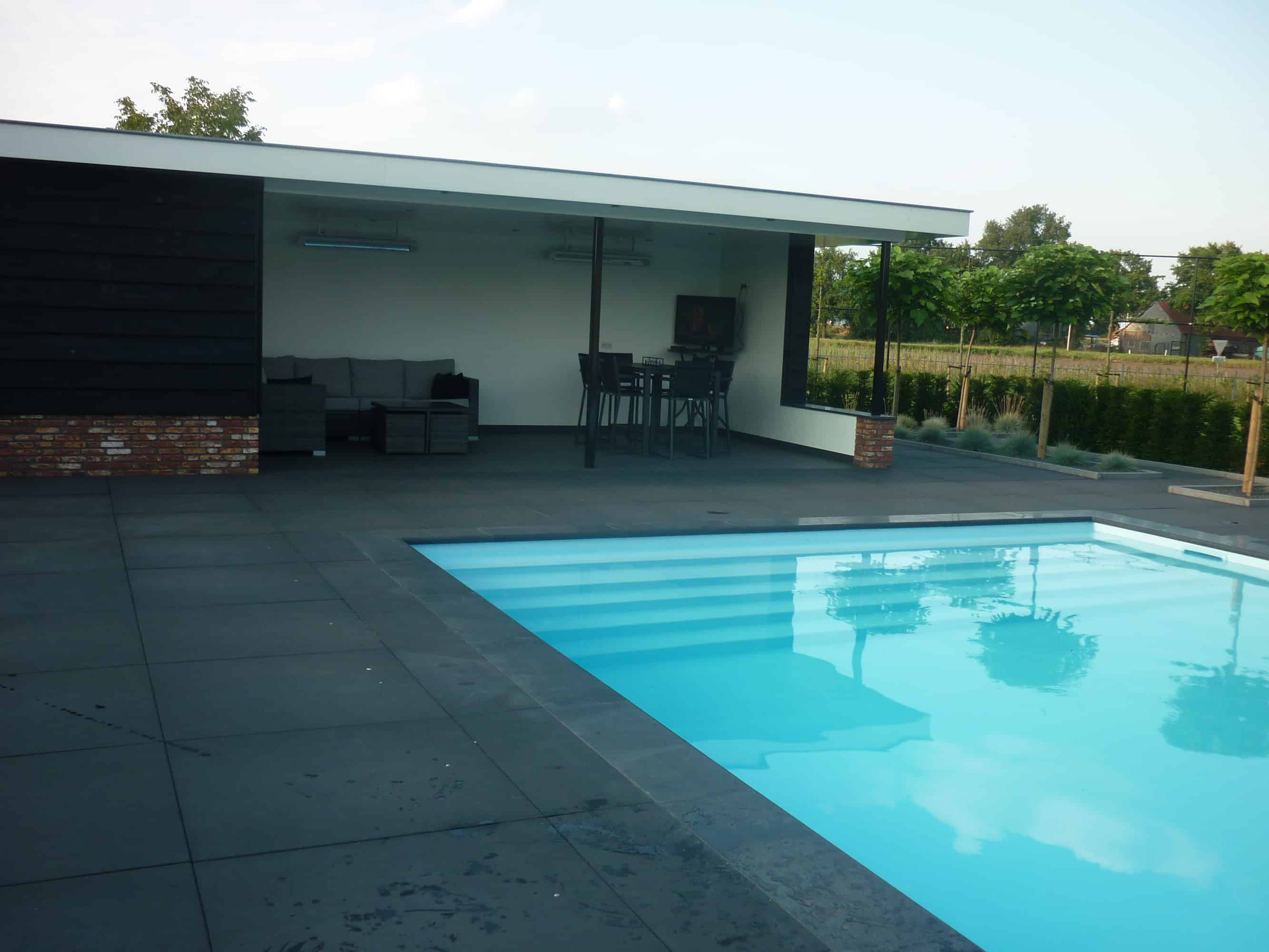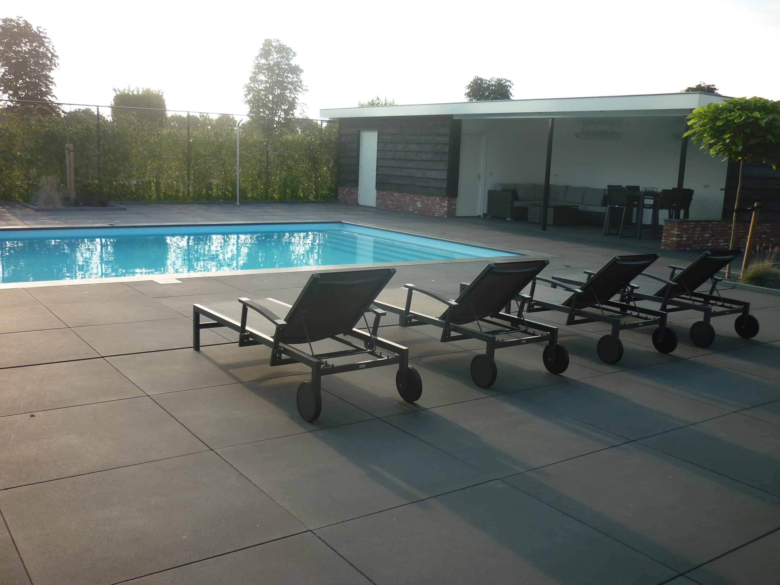 Zwembad en tuinhuis Aanleg zwembad i.s.m. Amata Zwembaden te Tilburg en nieuwbouw tuinhuis aan de Vierbundersweg te Tilburg Terug naar overzicht